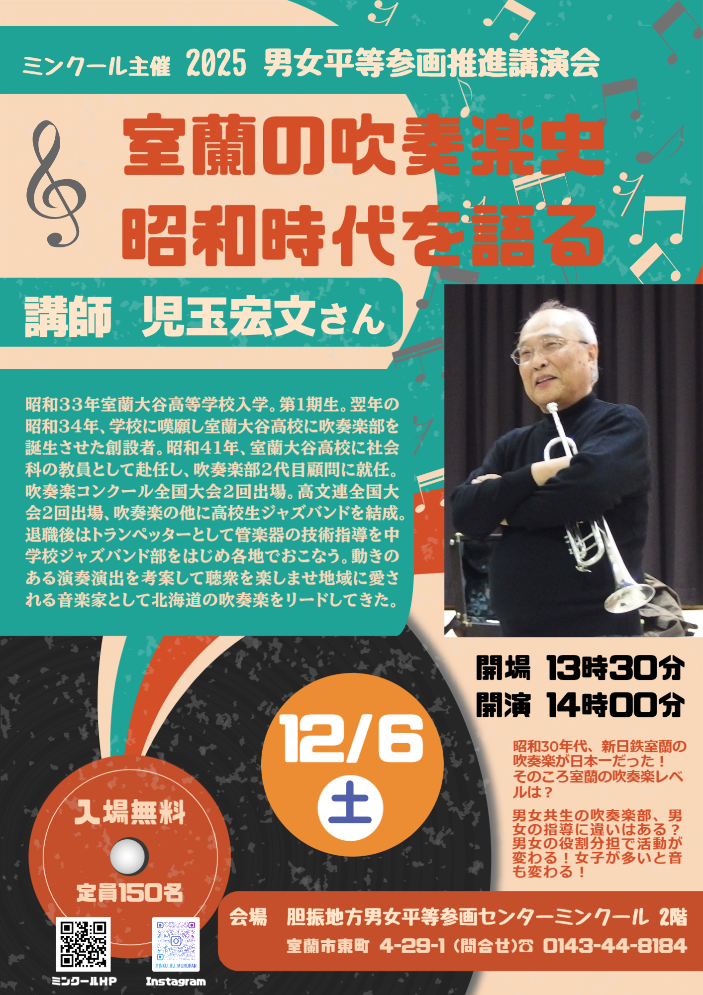 2025男女平等参画推進講演会「室蘭の吹奏楽史 昭和時代を語る」/12月6日(土)14時~16時