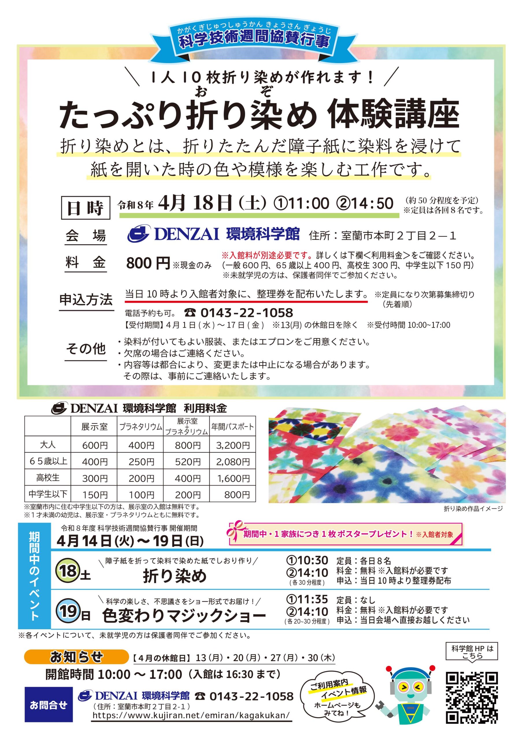 『たっぷり折り染め体験講座』のお知らせ