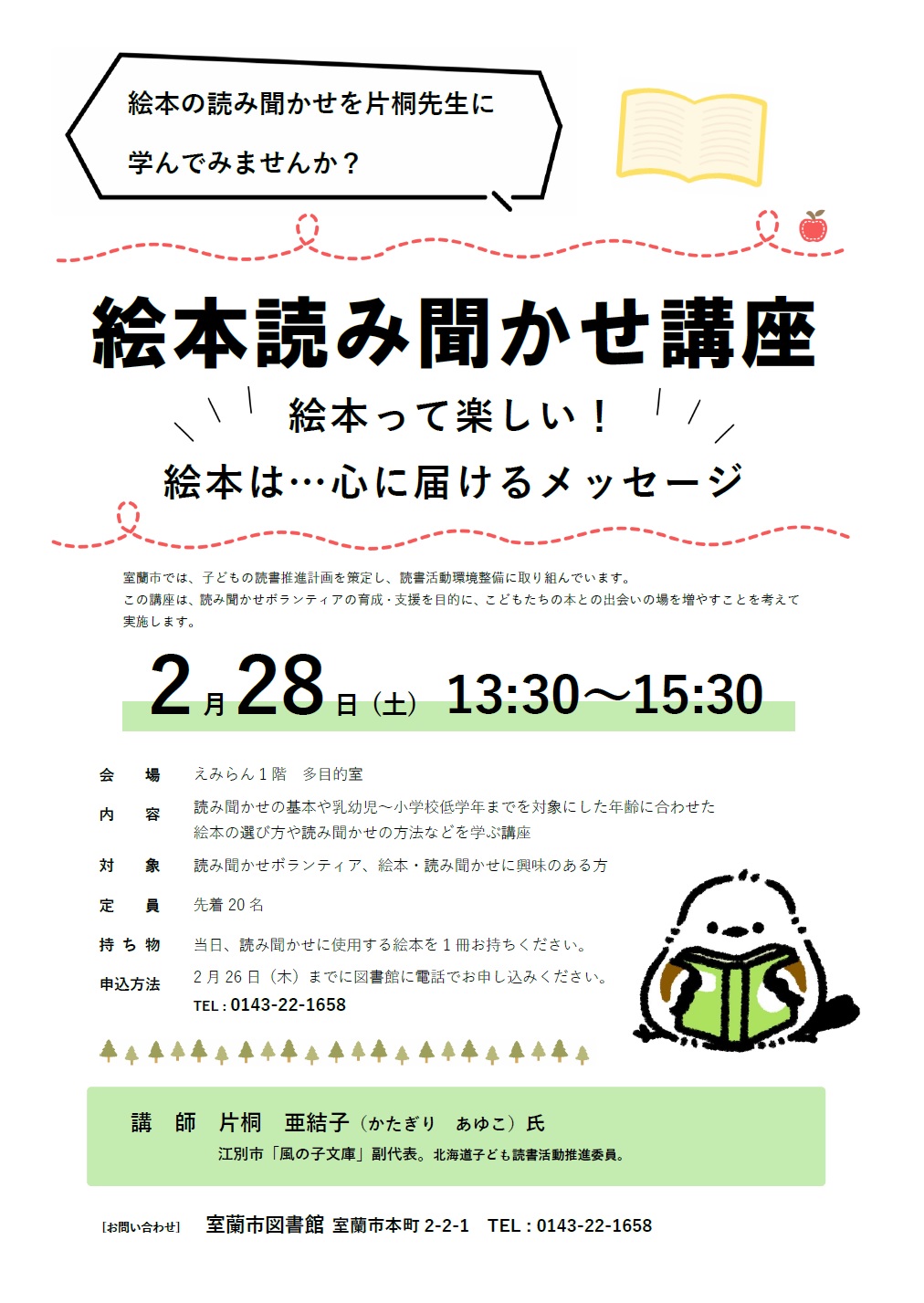 江別市「風の子文庫」副代表・片桐亜結子氏に絵本の読み聞かせを学んでみませんか